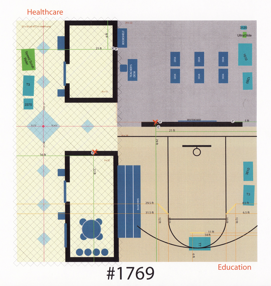 Tennant served several key vertical markets—schools, hospitals, retail, industrial/manufacturing, and, because the show was in Las Vegas, casinos felt like a natural addition. I took those environments and brought them to life inside the booth.