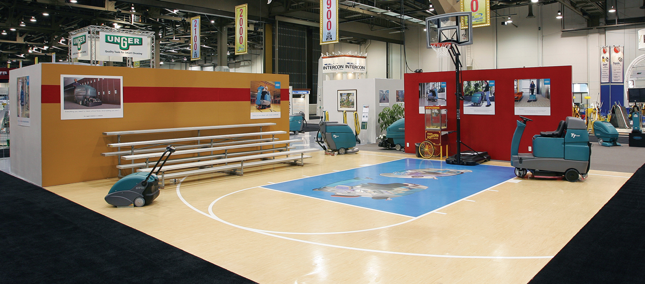 We needed a way to attract the right people, hold their attention, and show that we understood the real environments our customers cleaned every day—not just the products we sold. We also had to work within an existing footprint: two separate booth spaces positioned kitty-corner from one another, originally divided to keep two brands visually distinct.